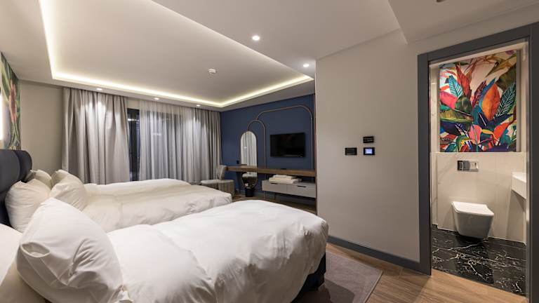 Die Zimmer des Calisi Hotels sind klimatisiert und verfügen über eine moderne Ausstattung. Zu den Annehmlichkeiten gehören ein Flachbild-TV mit Satellitenkanälen, ein Safe, ein Wasserkocher und ein eigenes Badezimmer mit Dusche und kostenlosen Pflegeprodukten. Einige Zimmer sind mit einem Balkon ausgestattet und bieten Stadtblick. Bettwäsche und Handtücher sind im Zimmer vorhanden.