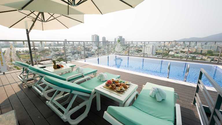 Das Hotel bietet ein reichhaltiges Frühstücksbuffet mit à la carte und kontinentalen Optionen an. Ein hauseigenes Restaurant serviert vietnamesische Küche. Für kleine Snacks stehen Kindermahlzeiten zur Verfügung. Zusätzlich können Gäste die Dachterrasse oder den Aussenpool nutzen.