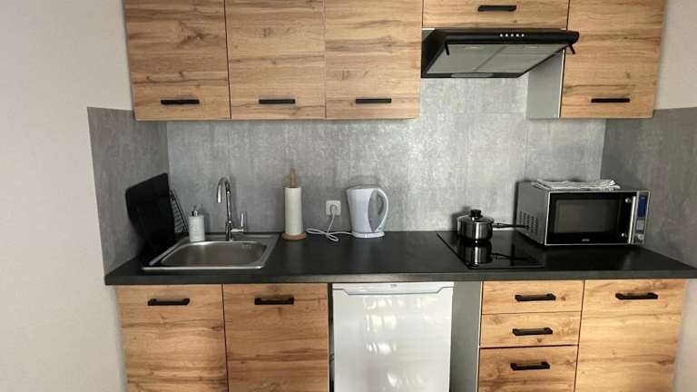 Die Unterkunft verfügt über eine Terrasse mit Gartenblick und einen Sitzbereich. Die Zimmer sind mit einem Flachbild-TV ausgestattet und eine voll ausgestattete Küche mit Kühlschrank, Mikrowelle, Herdplatte, Toaster und Wasserkocher ist vorhanden. Ein eigenes Badezimmer mit Dusche gehört ebenfalls zur Ausstattung.