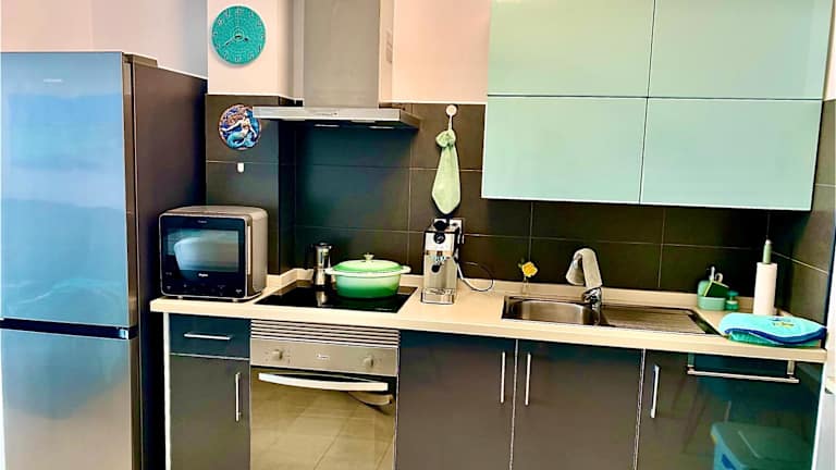 Die Ferienwohnung umfasst ein Schlafzimmer, ein Wohnzimmer, einen Flachbild-TV, eine gut ausgestattete Küche mit Kühlschrank und Ofen sowie ein Badezimmer mit Dusche. Zur Ausstattung gehören zudem ein Balkon mit Meerblick, Handtücher und Bettwäsche. Die Unterkunft ist eine Nichtraucherunterkunft und es werden Sonnenliegen sowie Sonnenschirme am Außenpool angeboten.