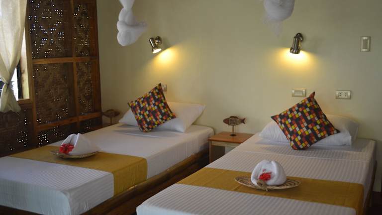 Jede Unterkunft verfügt über einen Safe, einen Kleiderschrank und ein eigenes Bad mit Warm-/Kaltwasserdusche. Einige Unterkünfte sind klimatisiert. Das Resort bietet zudem Zimmerservice sowie eine tägliche Reinigung.