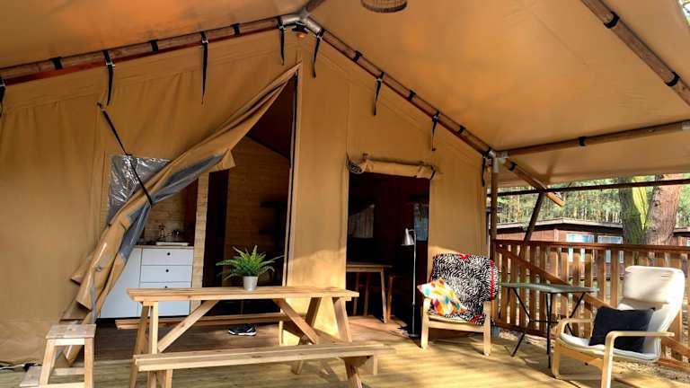 Camp Bursztynowy Las bietet Übernachtungsmöglichkeiten mit parkettböden, in einem heimeligen Garten, einer Gemeinschaftslounge und einer Terrasse. Es wird ein à la carte Frühstück angeboten. Die Unterkunft hat einen Kinderspielplatz und gestattet Haustiere. Parkiermöglichkeiten sind vorhanden.