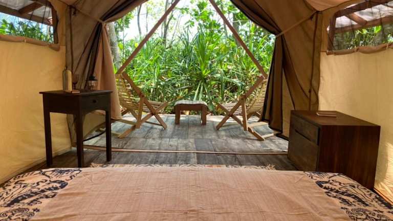 Die Unterkunft Camp Tarimbang befindet sich in Tandulujangga, unweit des Strandes Pantai Tarimbang, welcher in kurzer Distanz erreichbar ist. Der nächste Flughafen, Umbu Mehang Kunda, liegt 93 km entfernt.
