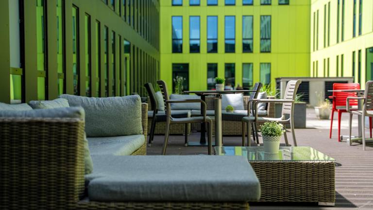 Zur Freizeitgestaltung stehen belebende Erfrischungen in der Außenpoolanlage bereit. Zudem können Gäste auf der Terrasse entspannen.