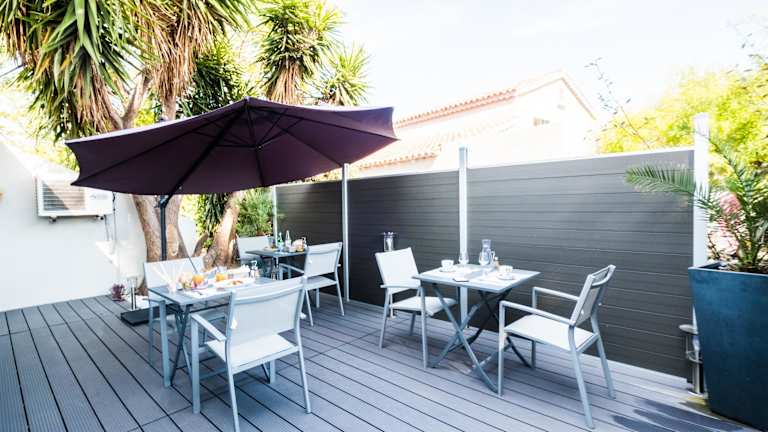 Das Hotel liegt in Six-Fours-les-Plages, nur 6 km vom Zentrum von Toulon entfernt. Es ist bequem von der Autobahn A50 aus erreichbar, die zu verschiedenen touristischen Zielen der Region Provence-Alpes-Côte d'Azur führt. Die Umgebung eignet sich perfekt für Besuche traditioneller Märkte und kultureller Veranstaltungen. Der nächste Flughafen ist Toulon (TLN), und die Rennstrecke Circuit Paul Ricard kann in etwa 30 Minuten erreicht werden.