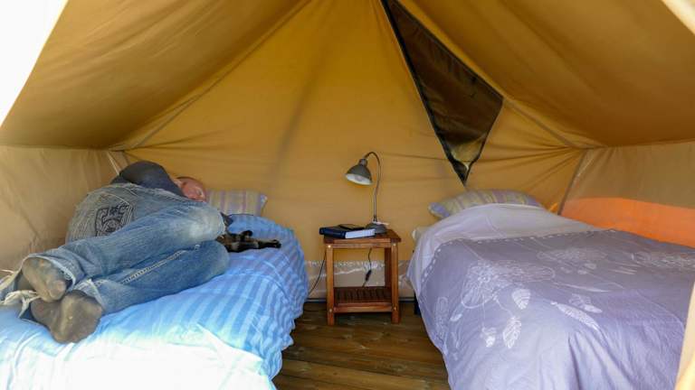 Auf dem Campingplatz steht ein Grill zur Verfügung, so dass Sie Ihre eigenen Mahlzeiten zubereiten können. Alternativ gibt es in der Umgebung auch Restaurants und Cafés, in denen Sie lokale Spezialitäten genießen können.
