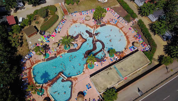Camping & Bungalows Les Salisses bietet Übernachtungsmöglichkeiten in einer einladenden Umgebung mit einem saisonalen Aussenpool und einem Garten, umgeben von einer einladenden Terrasse.