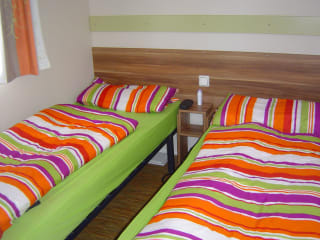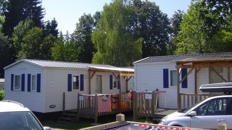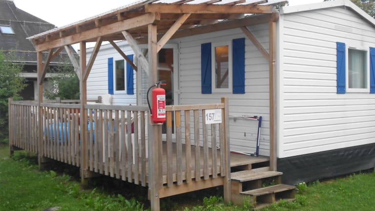 Die Mobilheime sind ausgestattet mit einem Schlafraum, einer Kochnische, einer Sitzecke, einer Terrasse und einem Badezimmer. Handtücher und Bettwäsche sind gegen Gebühr vor Ort erhältlich.