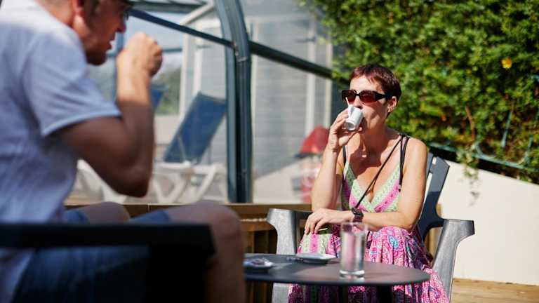 Von Juli bis August wird das Frühstück in der Snackbar serviert. Auf dem Gelände gibt es zudem einen Minimarkt und Grillmöglichkeiten. Weitere Restaurants und Geschäfte sind in der Nähe in Guérande zu finden.
