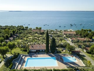 Der Campingplatz befindet sich direkt am See, mit eigenem Strandzugang, sowie einem herrlichen Ausblick auf den Gardasee und die Halbinsel Sirmione.