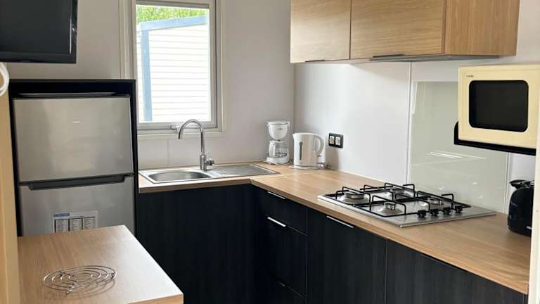 In der Unterkunft versteht sich eine Küche mit Kühlschrank, Mikrowelle und Herdplatte, die die Zubereitung von eigenen Mahlzeiten erlaubt. Eine Kaffeemaschine steht ebenfalls zur Verfügung.