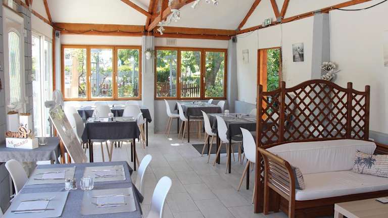 Das Camping Le Picard hat ein Restaurant sowie eine voll ausgestattete Küche mit einem Kühlschrank und einer Kaffeemaschine. Es sind keine weiteren Details zur Verpflegung vorhanden.