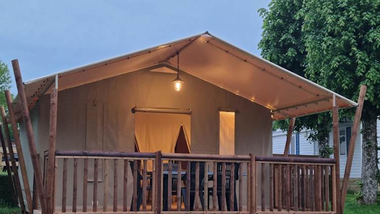 Die Unterkunft bietet verschiedene Arten von Unterkünften, darunter Mini-Safari-Zelte und mobile Homes. Es wird darauf hingewiesen, dass Bettwäsche und Handtücher nicht bereitgestellt werden. Einige mobile Homes haben nur eine Teilansicht des Sees. Die Ausstattung der Zimmer umfassen keinen Zugriff auf Toilettenpapier, und Grillmöglichkeiten sind gemeinschaftlich angelegt.