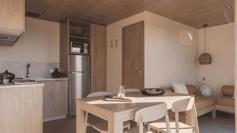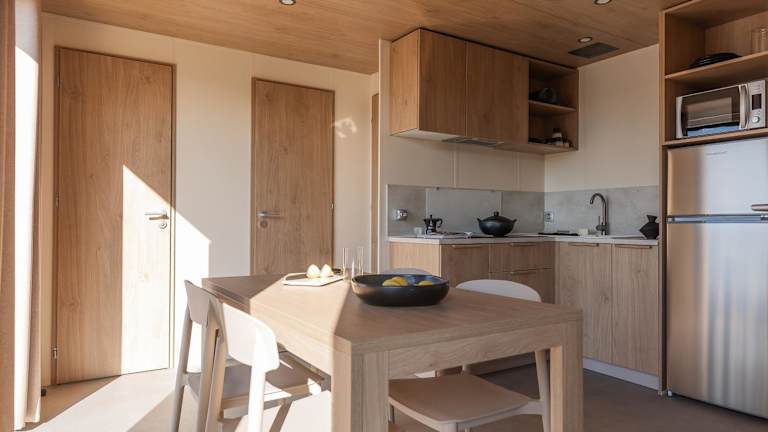Die Zimmer bieten eine voll ausgestattete Küchenzeile mit Kühlschrank, Geschirrspüler, Mikrowelle und Herdplatte. Jedes Zimmer verfügt über ein eigenes Badezimmer mit Dusche sowie einen Sitzbereich und TV. Zusätzlich steht eine Terrasse zur Verfügung.