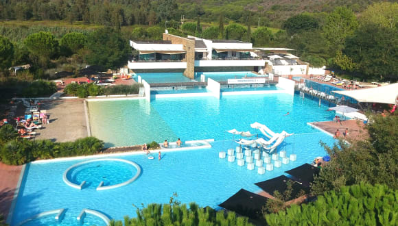• Privatstrand, 600 m vom Camping Village Eingang entfernt: 1 Sonnenschirm + 2 Liegestühle, Parkplatz. € 15,00/25,00 pro Tag (Nebensaison/Hochsaison) € 85,00/150,00 pro Woche (Nebensaison/Hochsaison); • Clubkarte obligatorisch vom Mai bis Anfang September: € 35,00 pro Woche für 4 Personen (Bungalow A/B/MiniLodge-Zelt) – € 50,00 für 5/6 Personen (Bungalow C/D/Mietwohnwagen/Mobilheim/Lodge-Zelt/Double Lodge-Zelt), die berechtigt zur Benutzung der Sportanlage und dem Unterhaltungsprogramm für Kinder und Erwachsene + Miniclub für Kinder ab 5 Jahren, Türkische Bad. • Sonnenliegen am Pool: € 2,00 pro Liege pro Tag. • Das Restaurant bietet Mittelmeerküche mit Auswahl an typischen Gerichten, à la Carte Menü auch zum Mitnehmen. Glutenfreie Gerichte sind auch möglich. Halbpension: Erwachsene € 26,00/Tag/Pers. – Kinder bis 11 € 16.00Tag/Pers. Getränke nicht inbegriffen – ab mindestens 3 Tage Verpflegung. Vollpension: Erwachsene € 37,00/Tag/Pers. – Kinder bis 11 € 26.00/Tag/Pers. Getränke nicht inbegriffen – ab mindestens 3 Tage Verpflegung. • Tennisplatz: € 10,00/Stunde bis 20 Uhr – € 13,00/Stunde ab 20 Uhr bis 22 Uhr. Hallenfußballplatz: € 50,00/Stunde bis 20 Uhr – € 60,00/Stunde ab 20 Uhr bis 22 Uhr. • Fahrradverleih und Gefuehrte MTB-Touren Camping Village Rocchette verfügt außerdem über: Bar mit Poolblick, Minimarkt, kostenlose Wi-Fi Internet Verbindung in gemeinsamen Räumen und in den Deluxe Bungalows, Tabak-/Kioskladen, Waschsalon. Der öffentliche Strand liegt 300 m vom Eingang des Camping Village entfernt, zu Fuß oder mit dem Fahrrad bequem erreichbar. Das Zentrum von Castiglione della Pescaia ist nur 6 Km entfernt, leicht erreichbar mit eigenem Auto, Fahrrad oder öffentlichem Shuttledienst während der Sommersaison.