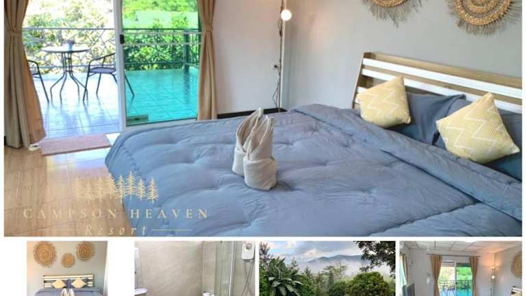 Campson Heaven Resort bietet Übernachtungsmöglichkeiten in heimeliger Atmosphäre mit einer freundlichen Ausstattung. Die Unterkunft verfügt über einen Zimmerservice, einen Kinderspielplatz sowie eine einladende Terrasse, die den Gästen zur Verfügung steht. Ein kostenloser Privatparkplatz und kostenloses Wifi sind ebenfalls vorhanden.