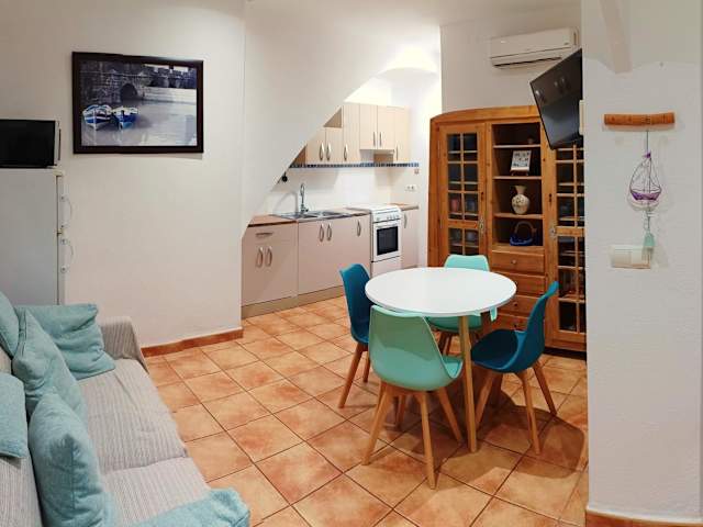 Can Trafalgar - Casita en pueblo marinero bietet Übernachtungsmöglichkeiten in einer heimeligen Ferienwohnung. Diese Unterkunft ist nach den Regeln der Vermietung für private Gastgeber strukturiert und erlaubt keine Junggesellen- bzw. Junggesellinnenabschiede oder ähnliche Feiern. Die Ferienwohnung ist mit Klimaanlage ausgestattet und bietet eine Veranda bzw. einen Patio sowie kostenfreies Wifi.