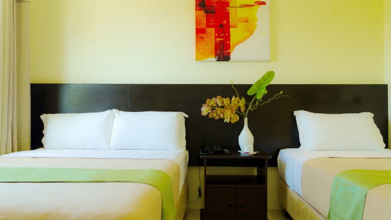 Die klimatisierten Zimmer sind mit einem Doppelbett ausgestattet und verfügen über ein eigenes Badezimmer. Jedes Zimmer hat einen Safe, eine Hosenpresse und ist mit einem Flachbild-TV, Sat-TV sowie kostenlosem WiFi ausgestattet. Zu den Badezimmern gehören sowohl eine Dusche als auch eine Badewanne. Es stehen Familien- und Nichtraucherzimmer zur Verfügung.