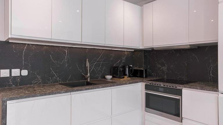 Die Ferienwohnung besteht aus zwei Schlafzimmern, einem Wohnzimmer, einer voll ausgestatteten Küche, zwei Badezimmern sowie Klimaanlage. Zu den Annehmlichkeiten gehören ein Kühlschrank, eine Kaffeemaschine, Handtücher und Bettwäsche. Die Badezimmer sind mit einer Dusche und einem Haartrockner ausgestattet. Schallisolierte Zimmer sind ebenfalls vorhanden.