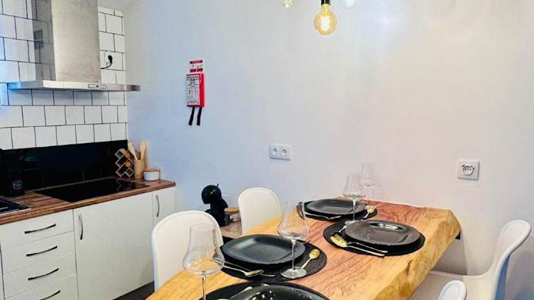 Das Ferienhaus verfügt über eine voll ausgestattete Küche mit Minibar und Wasserkocher, damit Gäste ihre Mahlzeiten selbst zubereiten können. Keine weiteren Verpflegungsmöglichkeiten sind angegeben.
