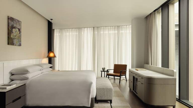 Die Deluxe Rooms sind ca. 46 m² gross und bieten Annehmlichkeiten wie Klimaanlage, Sitzecke, Kühlschrank, Nespresso-Maschine und kostenloses Internet. Die Premier Rooms sind ca. 53 m² gross und verfügen zudem über einen Schreibtisch. Alle Zimmer sind mit einem eigenen Badezimmer, Bademänteln und Slippern ausgestattet.