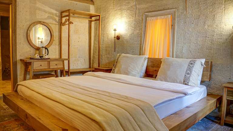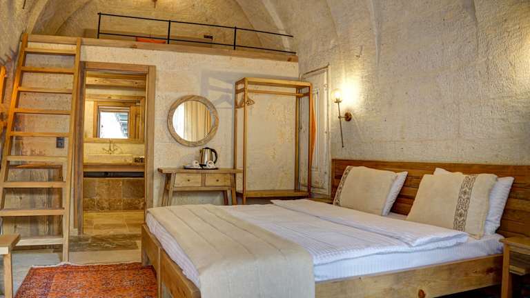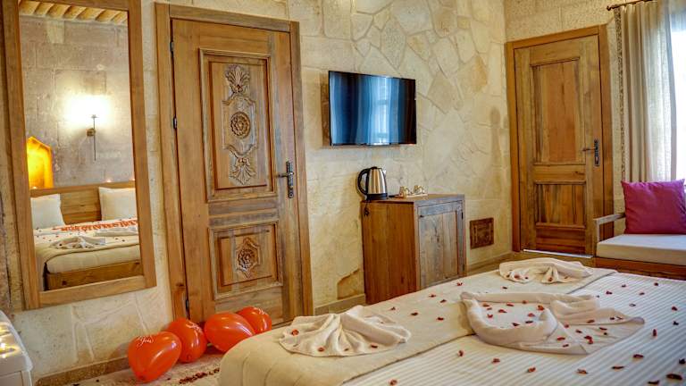 Jedes Zimmer im Cappadocia Alfa Cave Hotel ist mit einem Kleiderschrank, einem Flachbild-TV und Klimaanlage ausgestattet. Darüber hinaus verfügen alle Wohneinheiten über ein eigenes Badezimmer mit Dusche und kostenlosen Pflegeprodukten. Einige Zimmer bieten einen zusätzlichen Sitzbereich und sind gemütlich eingerichtet.