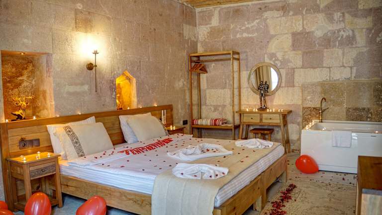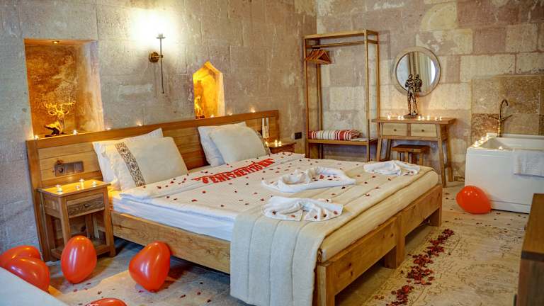 Cappadocia Alfa Cave Hotel ist eine attraktive Unterkunft in Ürgüp, die mit zahlreichen Annehmlichkeiten ausgestattet ist. Die elegante Gartenanlage sorgt für eine heimelige Atmosphäre. Die Rezeption ist rund um die Uhr besetzt und der Zimmerservice steht den Gästen jederzeit zur Verfügung. Währungsumtausch wird ebenfalls angeboten. Bitte beachten Sie, dass Junggesellen- und Junggesellinnenabschiede sowie ähnliche Feiern nicht erlaubt sind.