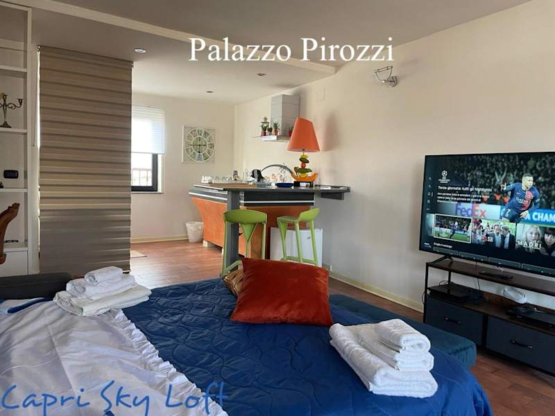Capri Sky Loft bietet Übernachtungsmöglichkeiten in einer heimeligen Atmosphäre mit einem Aussenpool, einem Garten und einer Gemeinschaftslounge. Die Unterkunft stellt den Gästen kostenloses WLAN zur Verfügung und bietet einen Blick auf die Stadt.
