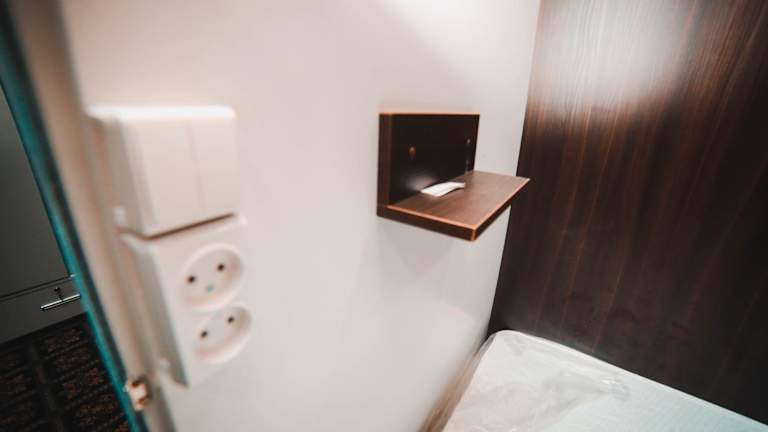 Die Zimmer in der Capsule hotel TechnoCave sind mit Klimaanlage, einem Sitzbereich, einem Flachbild-TV mit Kabelkanälen und einem Essbereich ausgestattet. Jedes Zimmer verfügt über ein Gemeinschaftsbad mit einer Dusche, Haartrockner und Hausschuhen. Bettwäsche und Handtücher sind ebenfalls vorhanden.