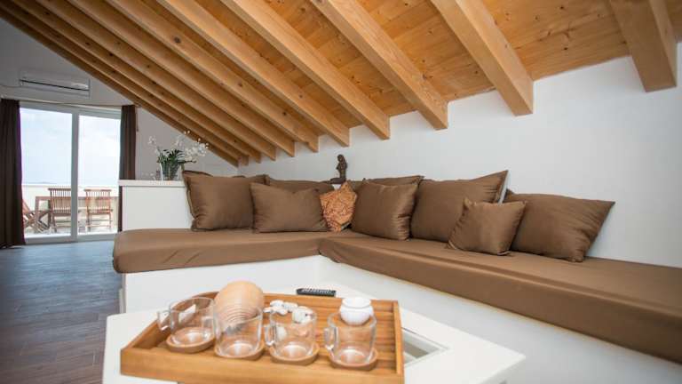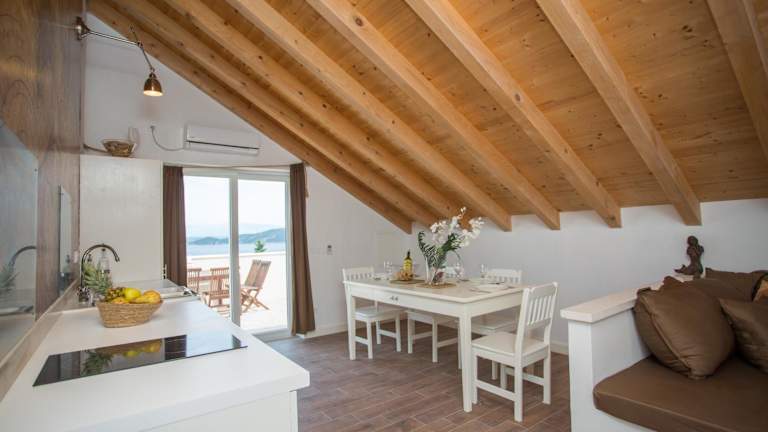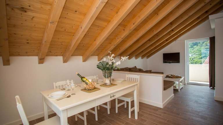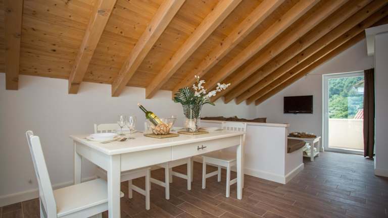 Die Unterkunft Captain's Attic befindet sich in einer malerischen Umgebung mit Bergblick und liegt etwa 800 m vom Strand Račišće entfernt. Der Strand Vaja Bay ist rund 600 m entfernt. In der Nähe gibt es weitere schöne Strände und Buchten.