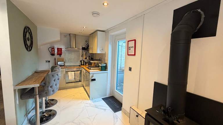 Das Cardiff Coach House with Hot Tub & Log Fire bietet eine heimelige Atmosphäre mit einer Veranda und einem Garten. Kostenloses Wifi steht zur Verfügung, und der Blick auf den Garten sorgt für eine angenehme Entspannung.