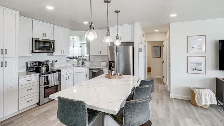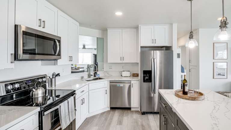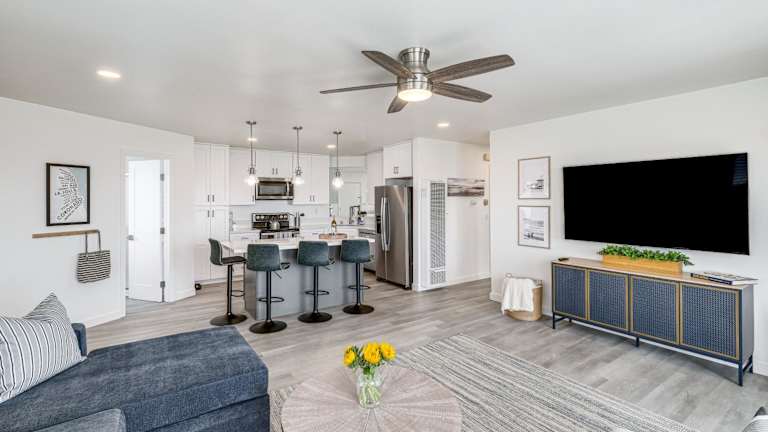 Die Ferienwohnung hat 2 Schlafzimmer und bietet Platz für Gäste, welche die Bequemlichkeit einer voll ausgestatteten Küche schätzen. Zur Ausstattung gehören ein Kühlschrank, Geschirrspüler, Waschmaschine, Ofen und Mikrowelle. Ein Flachbild-TV mit Kabelkanälen ist ebenfalls vorhanden. Handtücher und Bettwäsche werden bereitgestellt.