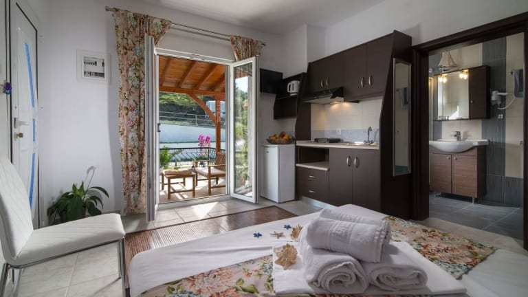 Die Unterkunft bietet verschiedene Wohneinheiten, darunter Zimmer mit einem Sitzbereich, einem Flachbild-TV sowie einer voll ausgestatteten Küche mit Kühlschrank und Herdplatte. Jedes Zimmer verfügt über ein eigenes Badezimmer mit Dusche und kostenlosen Pflegeprodukten. Einige Einheiten bieten zudem einen Balkon oder eine Veranda mit Stadtblick.