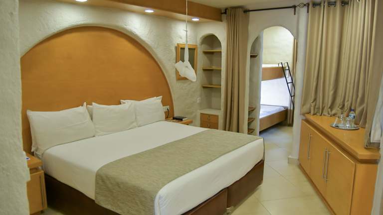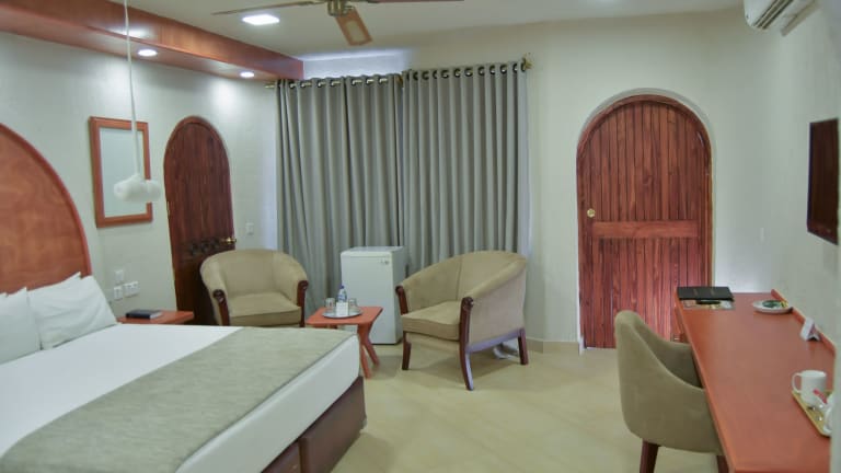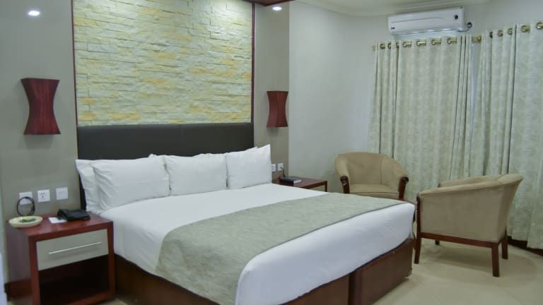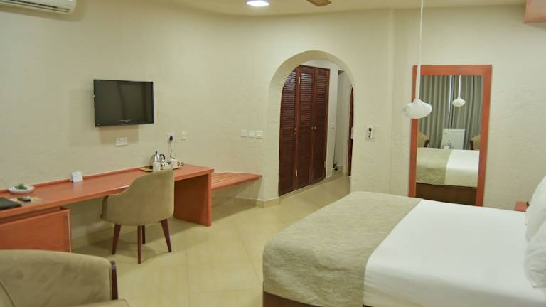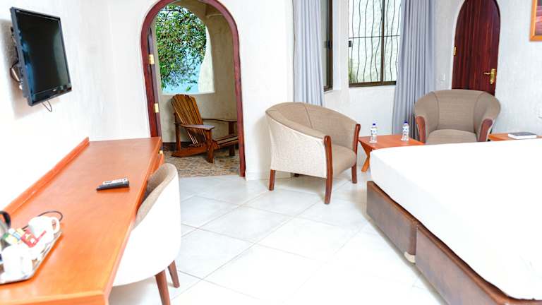 Die Zimmer verfügen über eine Klimaanlage, ein Doppelbett, ein Queensize-Bett oder ein Kingsize-Bett. Ein Balkon oder eine Terrasse mit Landblick ist ebenfalls vorhanden. Zur Austattung zählen ein Safe, ein Schreibtisch, eine Tee-/Kaffeemaschine, ein Telefon mit Direktwahl sowie ein TV-Gerät. Im Badezimmer gibt es eine Dusche und eine Badewanne, sowie einen Haartrockner und Bademäntel.