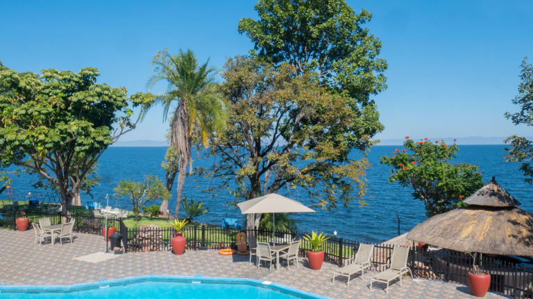 Das Resort liegt am Ufer mit Blick auf den riesigen Kariba-See, ganz in der Nähe zu Sambia. Die Fahrt vom Hotel zum Stadtzentrum Karibas dauert voraussichtlich 20 Minuten.