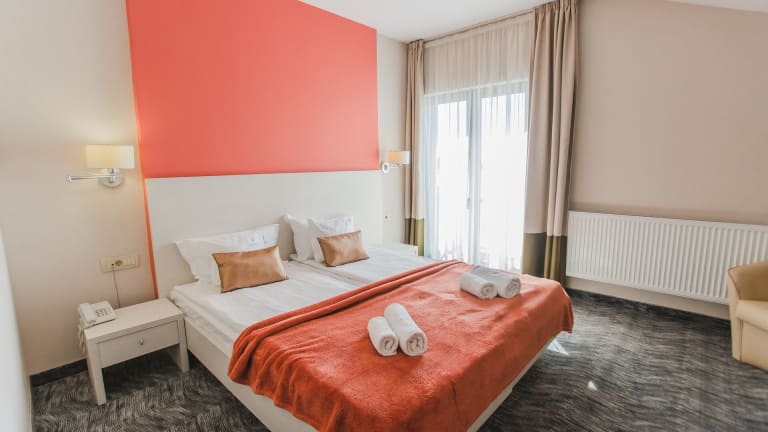 Das hoteleigene Restaurant verwöhnt die Gäste mit internationalen und traditionellen rumänischen Gerichten. Zusätzlich bietet das Hotel eine Bar und Möglichkeiten für Snacks oder spezielle Ernährungsbedürfnisse, die auf Anfrage zubereitet werden können.