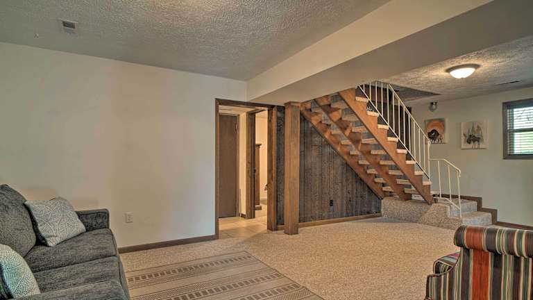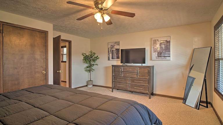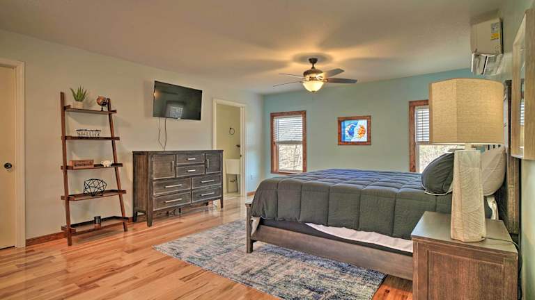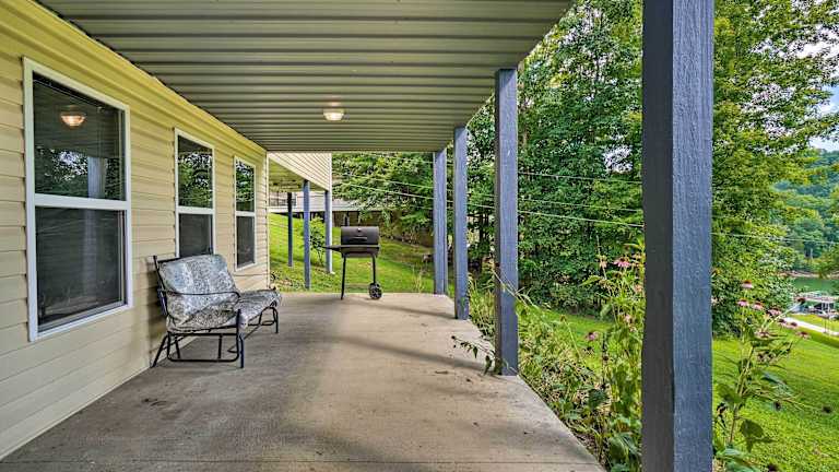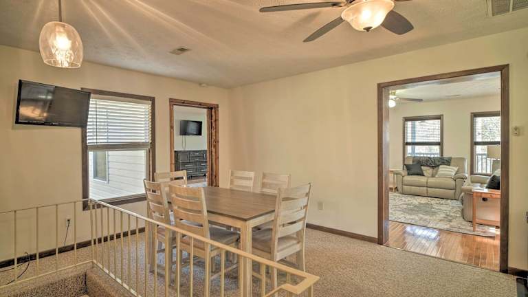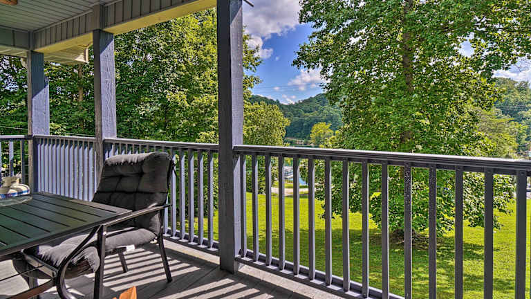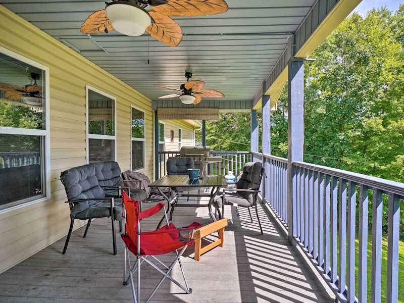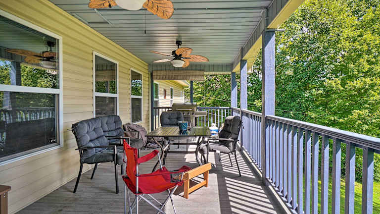 Caryville Home with Dock, Steps to Norris Lake! bietet Übernachtungsmöglichkeiten in einem heimeligen Ferienhaus mit Balkon und kostenlosem Wifi. Das Ferienhaus verfügt über eine Veranda mit Blick auf den See und ist klimatisiert.