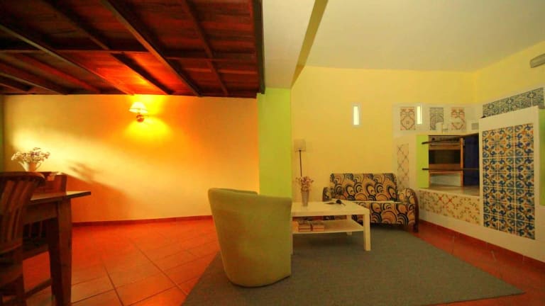 Das Haus "TRÊS ÁGUIAS" Sieben geräumige Zimmer, alle mit eigenem Bad, stehen zu Ihrer Verfügung. Die Zimmer sind individuel und im Charme des Hauses eingerichtet. Auberdem steht Ihnen ein grober Aufenthaltsraum mit komplet eingerichteter Küche zur Verfügung. Ein Garten mit Sonnenterrasse, so wie einen Innenhof mit Grill und diversen Möglichkeiten zur sportlichen Betätigung können Sie ebenfalls benutzen. Ein privat Parkplatz steht Ihnen zur Verfügung.