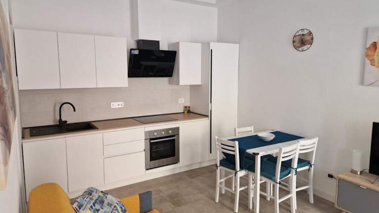 Die Ferienwohnung besteht aus einem Schlafzimmer, einem Wohnzimmer und einer voll ausgestatteten Küche mit Kühlschrank. Das Badezimmer verfügt über ein Bidet und einen Haartrockner. Handtücher und Bettwäsche werden zur Verfügung gestellt. Klimaanlage und Heizung sorgen für die notwendige Bequemlichkeit.