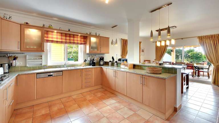 Die Villa ist mit einer voll ausgestatteten Küche ausgestattet, die es den Gästen ermöglicht, eigene Mahlzeiten zuzubereiten. Es bestehen Grillmöglichkeiten im Garten. Weitere gastronomische Angebote sind in der Umgebung zu finden.
