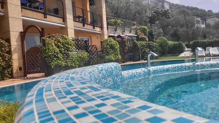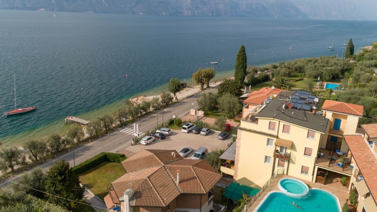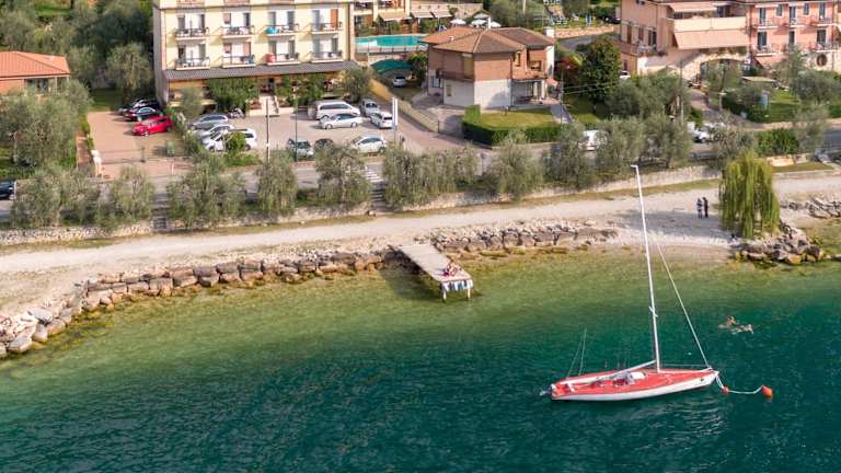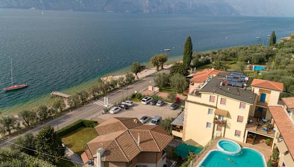 Die Gäste haben eine Auswahl an Dienstleistungen und Annehmlichkeiten, die einen Garten mit Gartenmöbeln, einen Frühstücksraum, einen Außenpool mit einer Hydromassage-Ecke und herrlichem Blick auf den See und die umliegenden Berge, einen Strand mit einem privaten Steg, TV-Lounge in der Halle und kostenlose Parkplätze umfassen. Eine Garage steht ebenfalls zum Preis von Euro 4,- pro Tag zur Verfügung. Die Rezeption ermöglicht Gepäck- und Fahrradaufbewahrung und organisiert Ausflüge, Bootstouren und Besichtigungen am Gardasee und in der Umgebung. Haustiere sind auf Anfrage erlaubt.