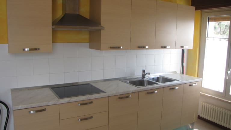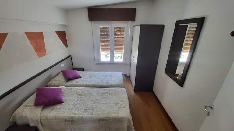 Die Küche, die an das Wohnzimmer grenzt, ist mit 4-Platten Elektraherd, Mikrowelle, Wasserkocher, Kühlschrank mit Gefrierfach und Italienischer Kaffeemaschine ausgestattet. Es gibt drei Schlafzimmer, die mit Doppelbetten und zwei Einzelbetten versehen sind. Das Appartement verfügt weiter über zwei Badezimmer die beide mit Waschbecken, WC und Bidet ausgestattet sind. Ein Badezimmer verfügt sogar über eine Badewanne. Das andere Badezimmer hat eine Dusche. Diese Wohnung ist sehr komfortabel und modern eingerichtet und verfügt über Zentralheizung, Klimaanlage, Safe, Einbruch Sicherungsanlage und Satellitenfernseher.