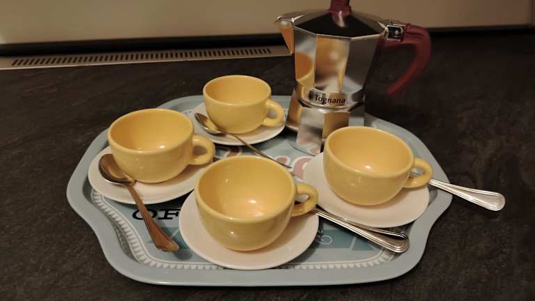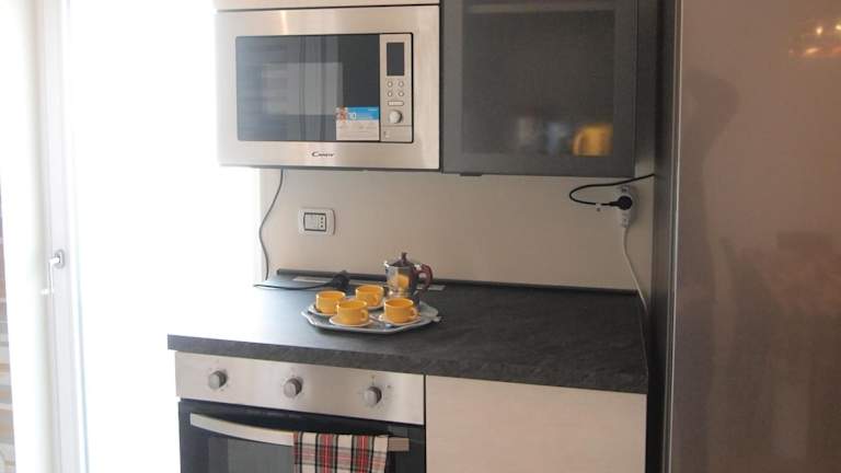 Die Küche des Appartements ist mit einem Kühlschrank, einem Geschirrspüler, einem Ofen sowie einer Kaffeemaschine und einem Wasserkocher ausgestattet. Es sind keine Informationen zu weiteren Verpflegungsmöglichkeiten vorhanden.