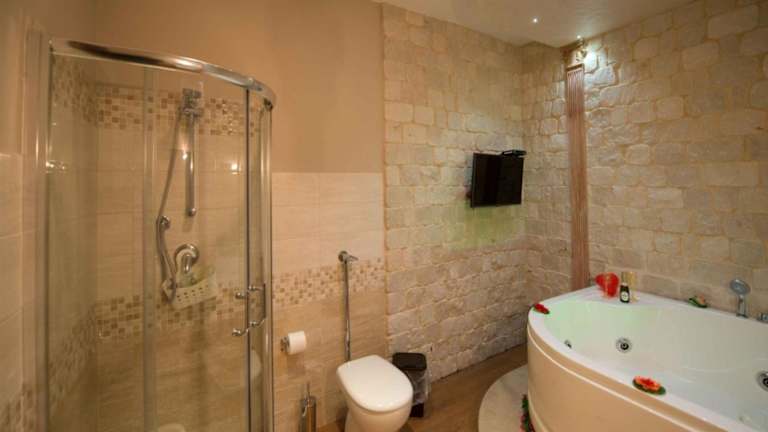 Das Ferienhaus bietet ein Schlafzimmer und ein Badezimmer. Die Ausstattung umfasst Bettwäsche, Handtücher, einen Flachbild-TV mit Satellitenkanälen, einen Essbereich sowie eine voll ausgestattete Küche. Zudem gibt es eine Terrasse mit Blick auf die Stadt und die Möglichkeit zur Nutzung eines Whirlpools.