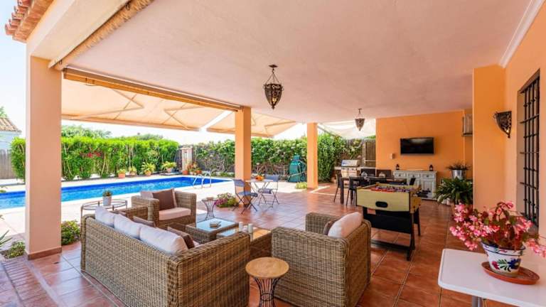 Das Ferienhaus bietet ein klimatisiertes Zimmer mit direktem Zugang zur Terrasse. Es besteht aus einer voll ausgestatteten Küche und einem TV. Handtücher und Bettwäsche werden zur Verfügung gestellt.