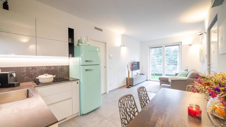 Die Wohnung verfügt über 2 Schlafzimmer, ein Wohnzimmer sowie eine voll ausgestattete Küche mit Kühlschrank und Kaffeemaschine. Zudem gibt es 2 Badezimmer mit Bidet und Dusche. Eine Klimaanlage sorgt für angenehme Bequemlichkeit. Handtücher und Bettwäsche können gegen eine zusätzliche Gebühr bereitgestellt werden.