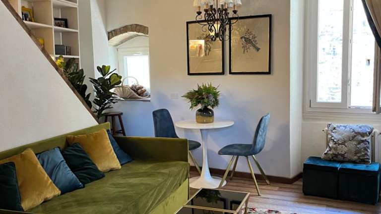 Die Ferienwohnung verfügt über 1 Schlafzimmer, ein Wohnzimmer und eine voll ausgestattete Küche mit Kühlschrank und Kaffeemaschine. Das Badezimmer ist mit Bidet und Dusche ausgestattet. Handtücher und Bettwäsche werden zur Verfügung gestellt, was zusätzlichen Komfort während des Aufenthalts bietet.
