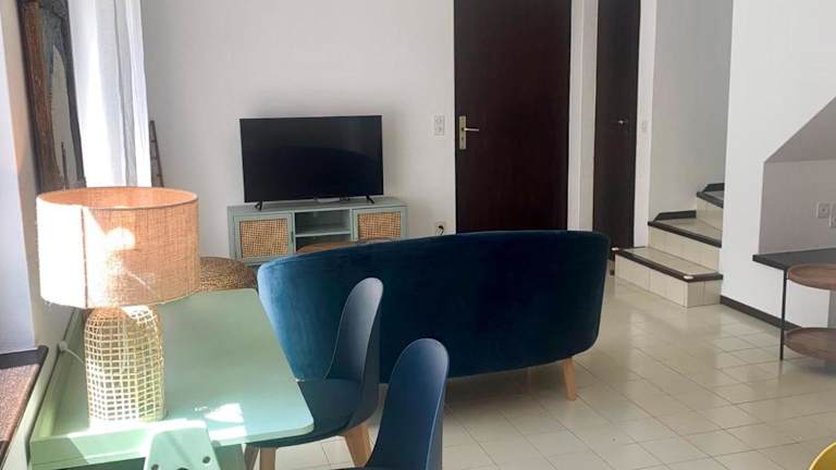 Das Ferienhaus ist ausgestattet mit zwei Schlafzimmern und einer komplett eingerichteten Küche, die über einen Kühlschrank und einen Geschirrspüler verfügt. Ein Flachbild-TV und ein Sitzbereich sind ebenfalls vorhanden. Das Badezimmer beinhaltet eine Badewanne. Handtücher und Bettwäsche werden bereitgestellt.