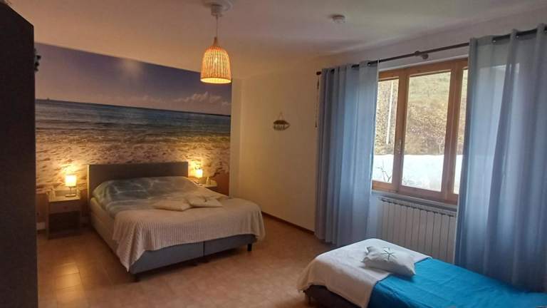 Die Unterkunft stellt den Gästen eine Terrasse mit Bergblick zur Verfügung. Die Zimmer sind ausgestattet mit einem Sitzbereich, einem Flachbild-TV sowie einer voll ausgestatteten Küche, die einen Kühlschrank und einen Ofen umfasst. Darüber hinaus gibt es Gemeinschaftsbäder mit bidets und kostenlosen Pflegeprodukten.