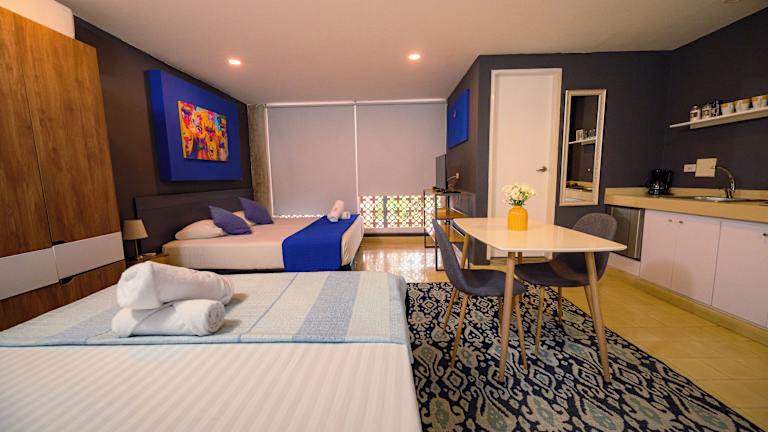 Die Übernachtungsmöglichkeiten sind als Apartaestudios eingerichtet und beinhalten Annehmlichkeiten wie Klimaanlage, Kostenloses Wifi in allen Bereichen sowie die Möglichkeit zur Gepäckaufbewahrung. Haustiere sind in der Unterkunft gestattet.